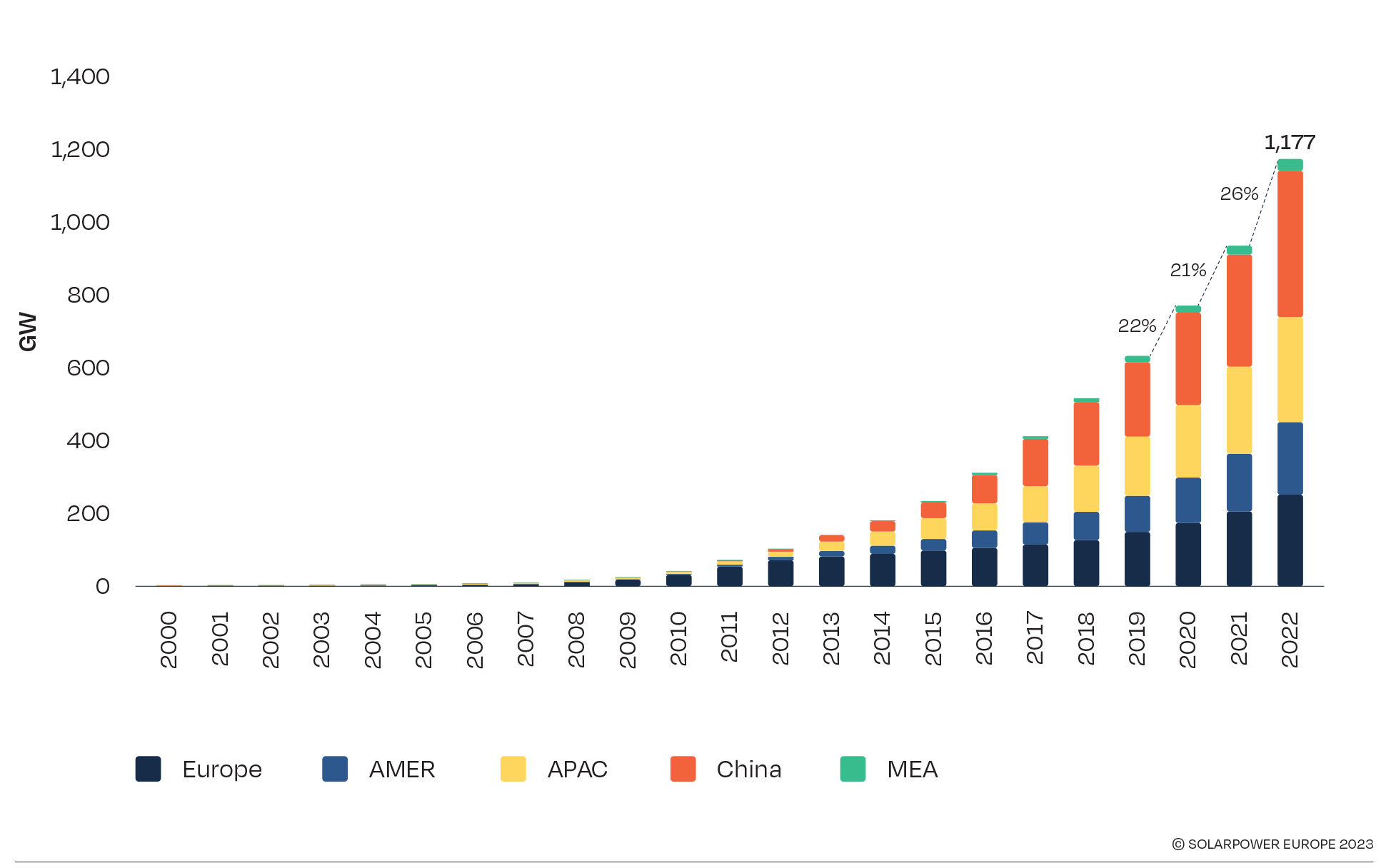 Solar PV is a maturing industry. Its development globally has been phenomenal, with a sustained double-digit annual growth rate in excess of 10% for the last three decades (see Figure 1). This is due to an equally impressive reduction in the cost of the energy produced by the technology (see Figure 2). Sustaining this cost reduction is critical for maintaining competitiveness against other energy technologies. This guide aims to contribute to further cost reductions. The collection of best practices cannot always be understood as a benchmark, as it might not fit to the company and project’s structure.