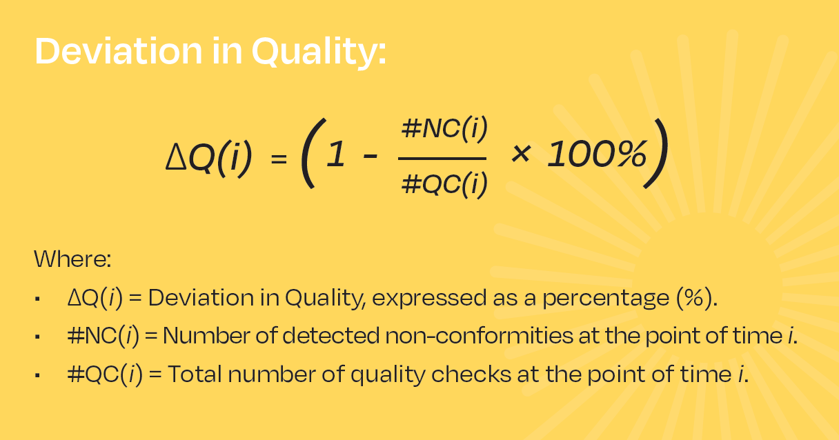 Quality KPIs measure the quality of construction as well as the construction process and are therefore quite technical. A general KPI for quality tracking is the Deviation in Quality, which can be defined as: