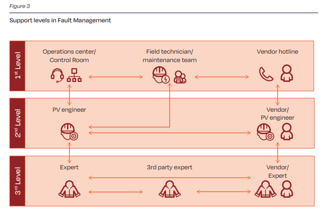A key point is that necessary data and documentation are available for all parties in a shared environment and that alarms and maintenance can be documented in a seamless way. Critical to the Operations team is that the maintenance tasks are documented back to and linked with the alarms which might have triggered the respective maintenance activity (work order management system log). Photographs from the site should complement the documentation (when applicable). Tickets (ticket interventions) should be stored electronically and made available to all partners. The Asset Owner should also maintain ownership of these records for future references.