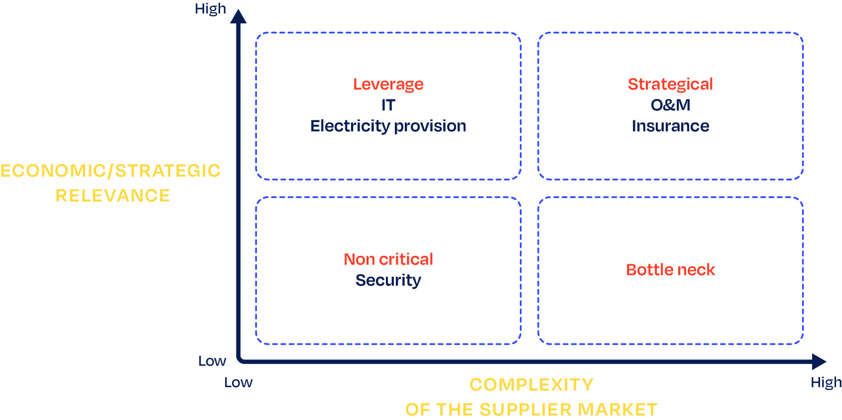 In line with the procurement best practices, before deciding the optimal procurement strategy, the suppliers should be classified based on two key criteria: